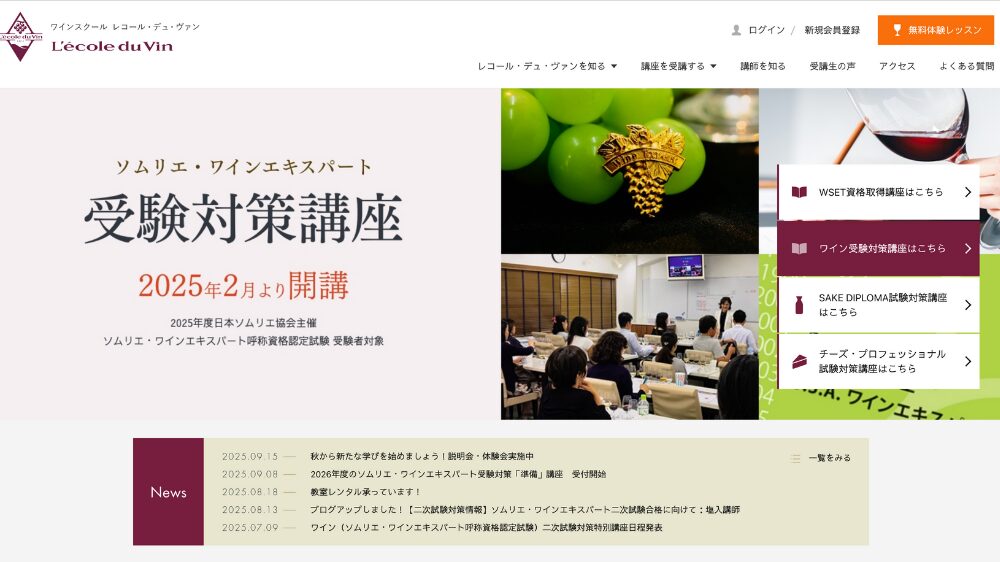 アカデミー・デュ・ヴァンは、30年以上の歴史があるワインスクールで、熟練の講師も多数在籍しています。規模が大きいため開校日が多く、スケジュールが合わせやすいです。