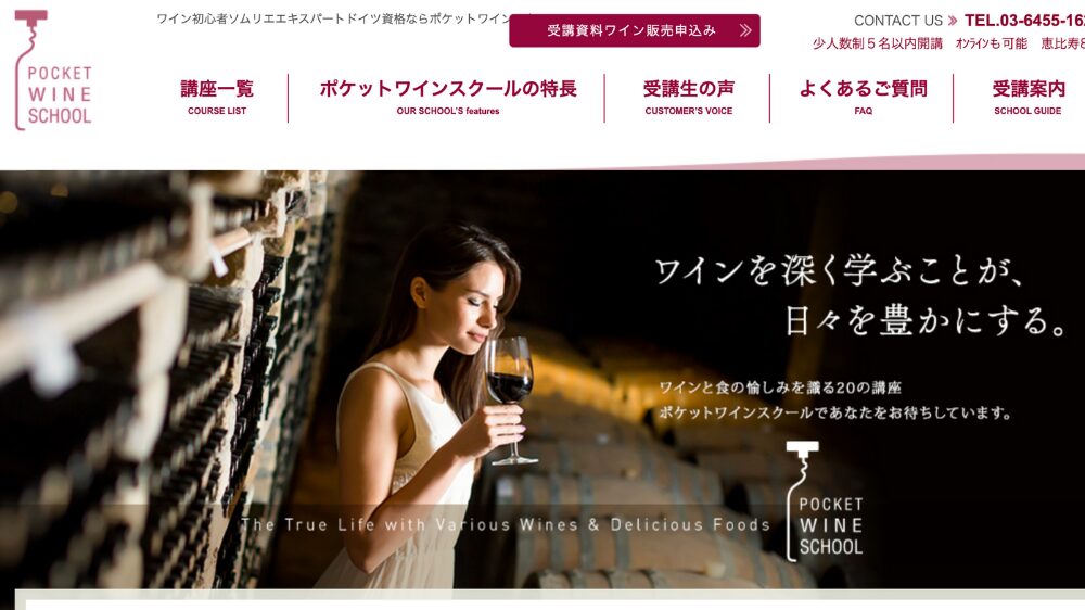 ポケットワインスクールは、6名以下の少人数制、合格率90%以上を誇るワインスクールです。また、東京の通学型スクールの中では圧倒的に費用が安いのも特徴です。